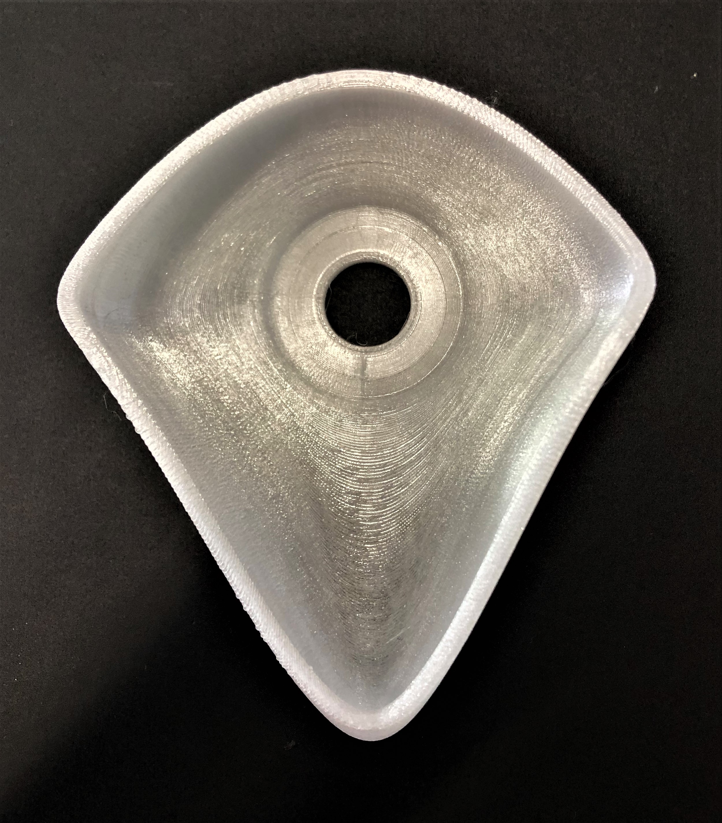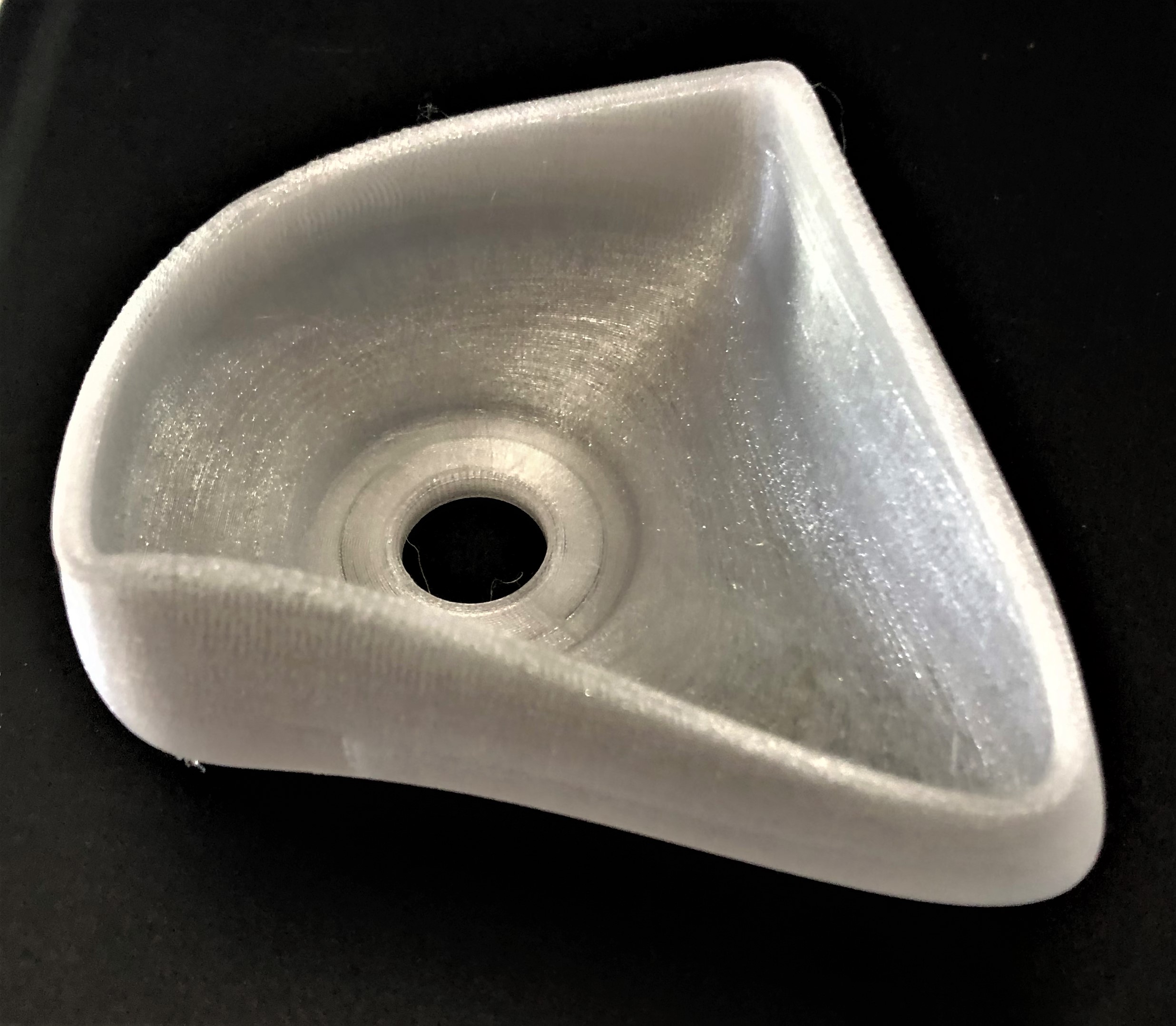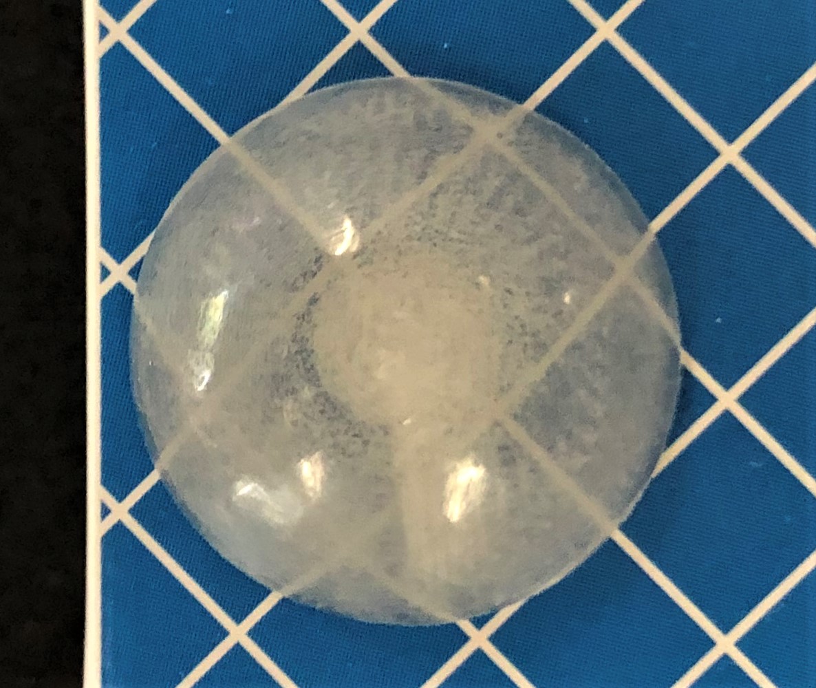 Linse Die Linse ist ein weiterer Versuch PC nach dem 3D-Druck mithilfe von Nachbearbeitung transparent zu bekommen. Hierbei wird die Einstellung des Füllungsüberlappungsprozentsatzes (Infill Overlap Percentage) von 0 % auf 6 % erhöht. Nach dem Druck soll diese ebenfalls geschliffen und poliert werden, um Transparenz zu schaffen. Die Nachbearbeitung hat gezeigt, dass es durchaus möglich ist, durch Schleifen und Polieren 3D-Druck-Teile bis zu einem gewissen Grad transparent zu bekommen. An einigen Stellen der Linse ist es sehr gut gelungen, an Anderen etwas weniger gut. Es kann versucht werden durch eine weitere Erhöhung des Füllungsüberlappungsprozentsatzes ein noch besseres Ergebnis zu erzielen.