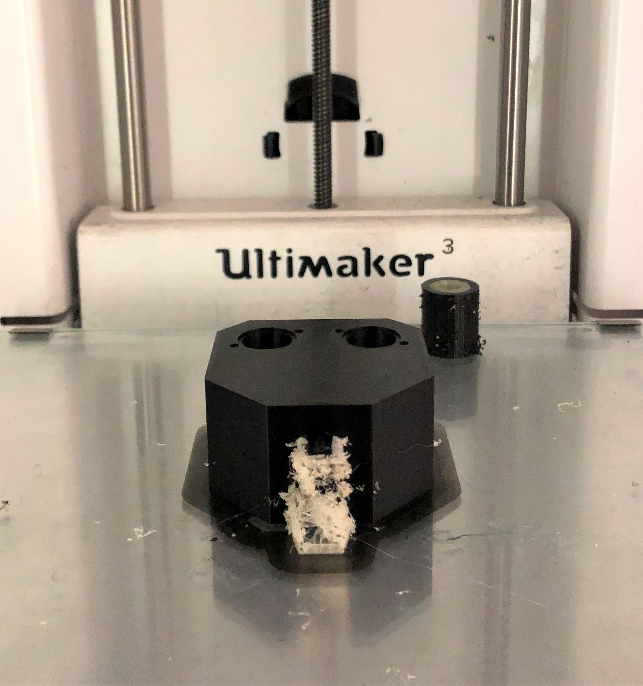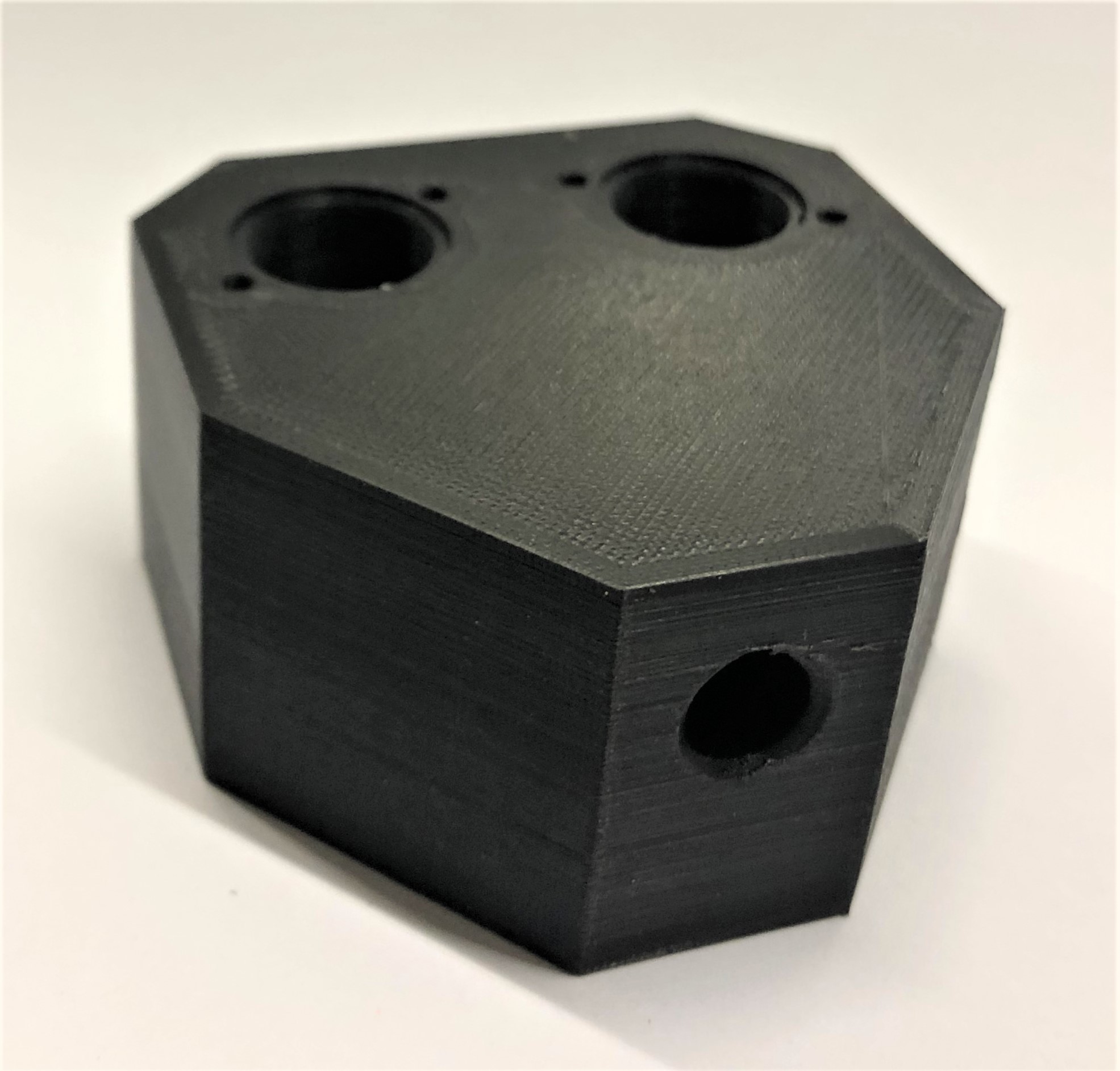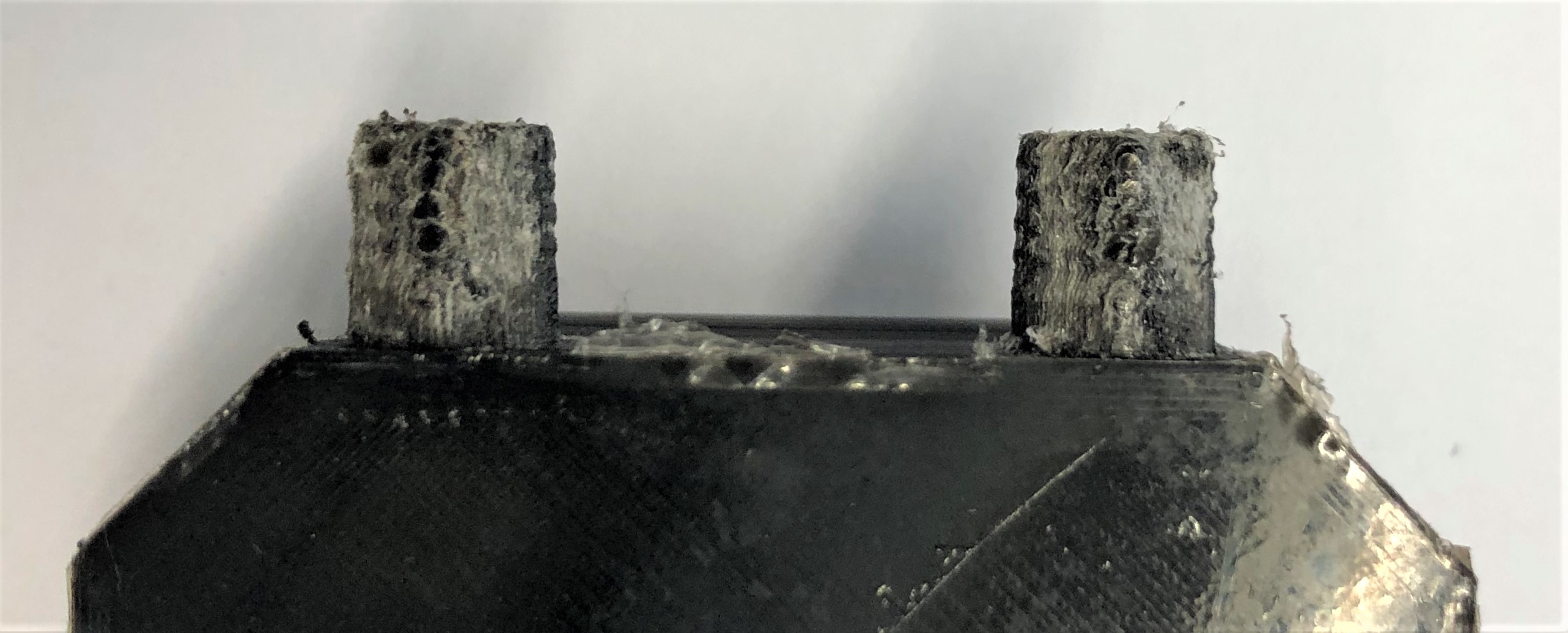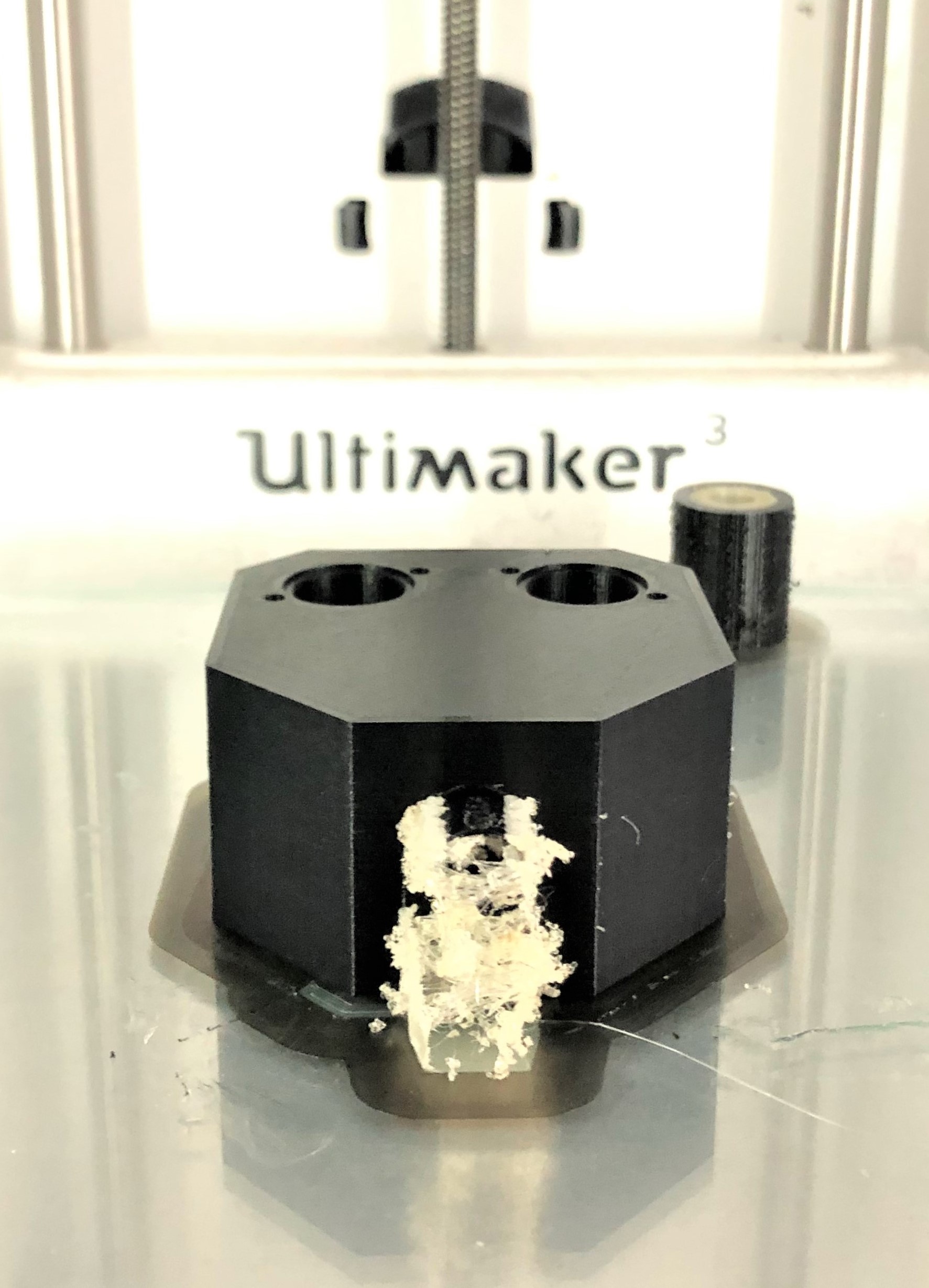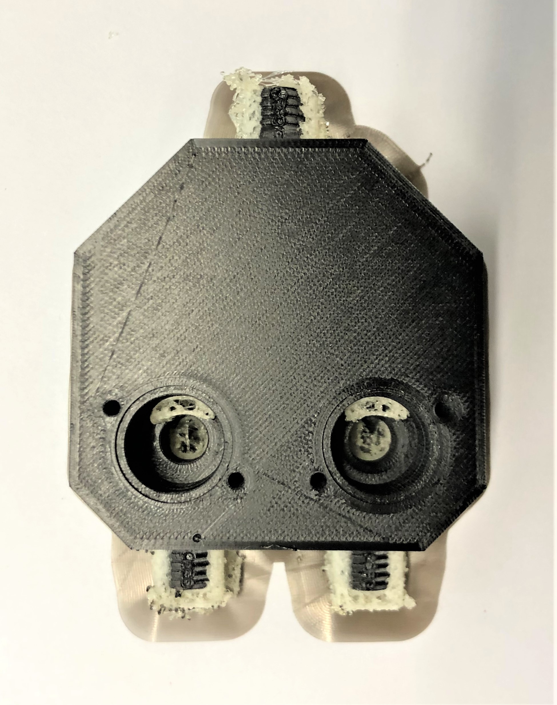 3D-Druck alternatives Mischgehäuse Auch dieser 3D-Druck zeichnet sich mit einer hohen Präzision aus, hat jedoch eine etwas schlechtere Qualität bei den hoch tolerierten Aufnahmen für die Proportionalventile. Da das Entfernen der Schlauchanschlüsse als Grund dieser Verschlechterung ausgeschlossen werden kann, muss es an der Änderung der Fülldichte liegen. Um dies zu Testen, sollten die Cura-Einstellung erneut geändert werden.