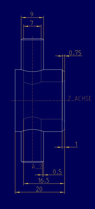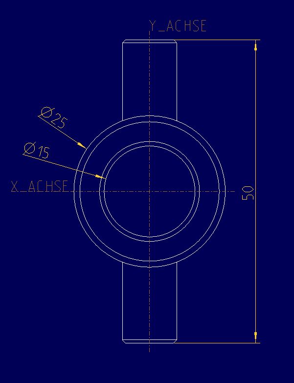 Verbindungsstück 3 Für das Projekt wird eine weitere Schnittstelle zwischen einem Sauerstoffsensor und dem ausgewählten Schlauch. Der Sensor, der zwischen Proportionalventil und Patienten gebraucht wird, soll mittels eines M16x1 Gewinde mit dem Bauteil verbunden werden, das senkrecht zu dem Gewinde und etwas weiter unten zwei Schlauchanschlüsse besitzt. Konstruktionsentwurf Für den M16x1 Gewindeaschluss des Sauerstoffsensors wird laut dem metrischen ISO-Feingewinde DIN 13 ein 15 mm Kernloch im Verbindungsstück vorgesehen. Das Kernloch hat eine Tiefe von 16,5 mm. Um eine Luftsäule zu vermeiden, wird versucht, den Sensor so nah wie möglich an den Hauptluftstrom und damit an die Schlauchanschlüsse zu setzen. Die Schlauchanschlüsse befinden sich senkrecht zum Gewindeanschluss und liegen auf einer gemeinsamen Achse. Sie haben, passend zu dem Schlauch aus Silikonelastomeren, einen Außendurchmesser von 9 mm und einen Innendurchmesser von 7 mm. Die Gesamthöhe des Bauteils beträgt 20 mm und ergibt sich aus der Gewindetiefe, die mindestens 6 mm betragen muss, da der Sensor eine Gewindelänge von 6 mm besitzt, und der Verbindung zu dem Hauptluftstrom. Die Gesamtlänge beträgt 50 mm.