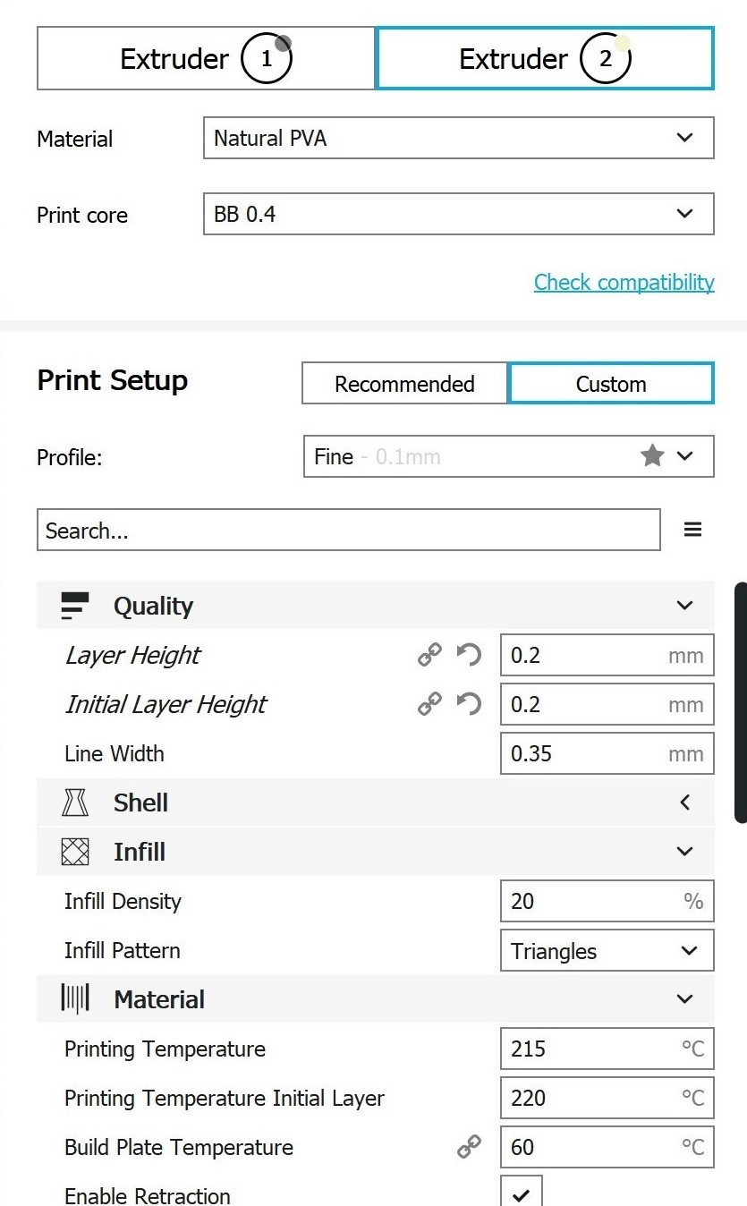 Extruder 2: PVA