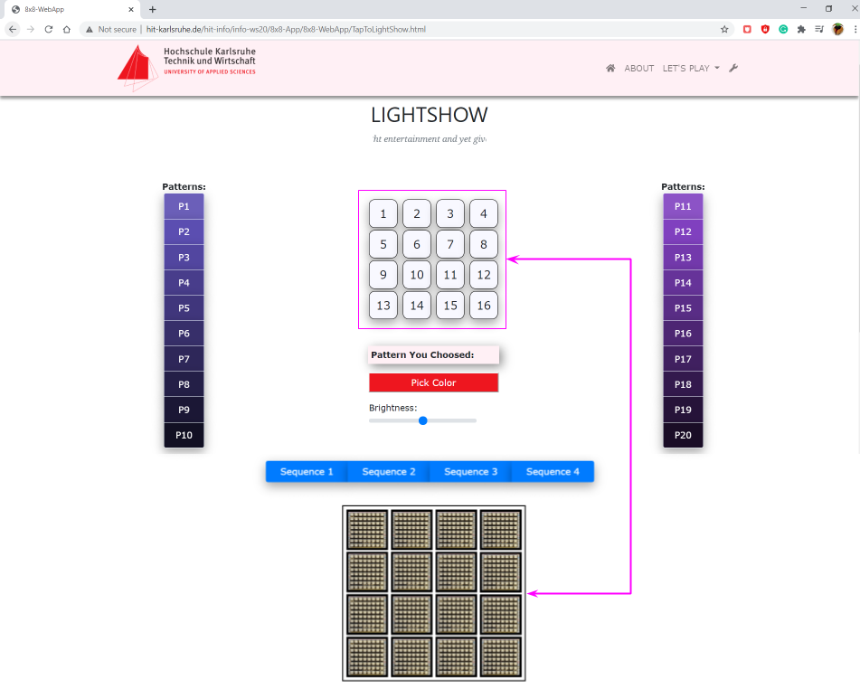 Figure 4.3.2: Tap-to-Light Page with real 8x8 RGB LED