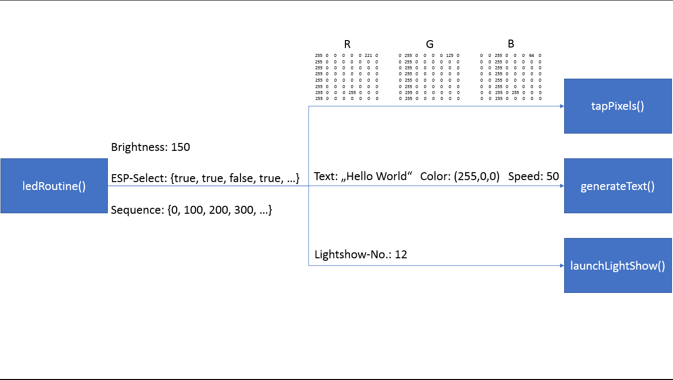 jeweils durch die übergeordnete Funktion ledRoutine() gestartet.