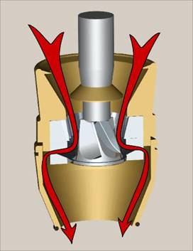 was bedeutet, dass das Mahlgut hierbei von einem kleinen Propeller