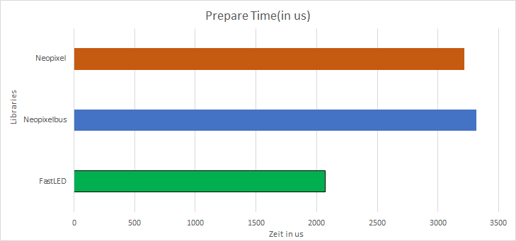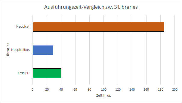 ungefähr 1 ms im Vergleich zu Neopixelbus und Neopixel. Für die