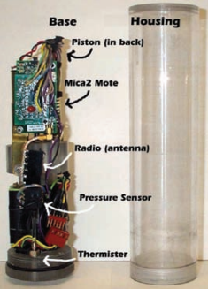 Das Gerät (links) besitzt einen Kolben, um seine Wasserverdrängung zu